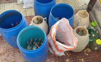 Şüphelilerin evlerinde yapılan aramalarda, 550 adet şişelenmiş kaçak alkol, 35 adet 0,5 litrelik pet şişede kaçak alkol ve 30 adet 5 litrelik bidon kaçak alkol ele geçirildi.