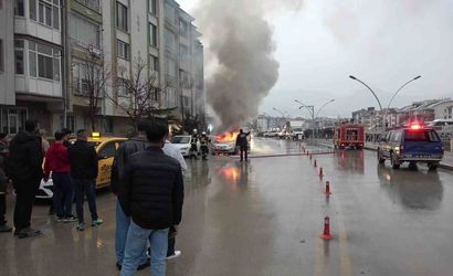 Amasya’da Otomobil Alev Alev Yandı