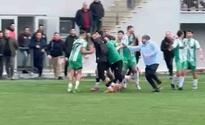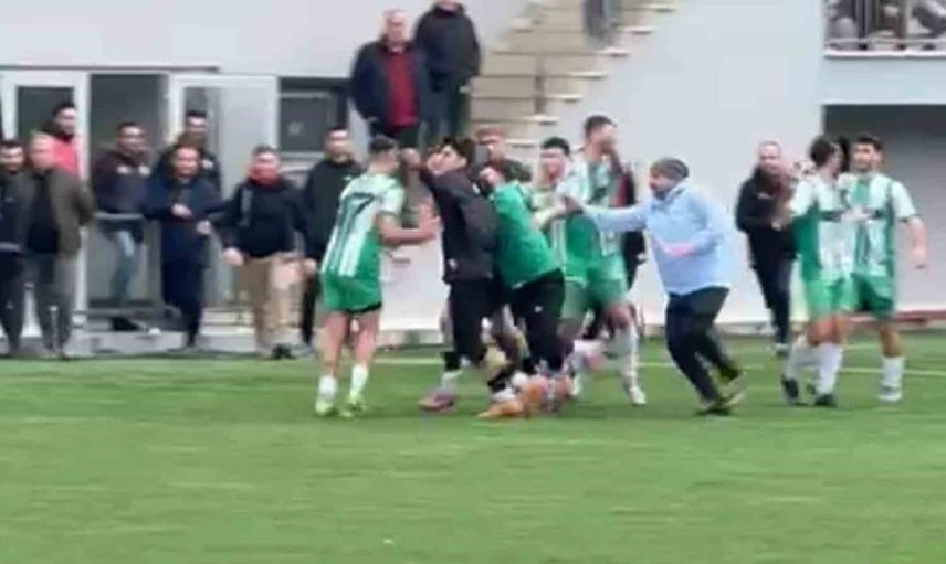 RİZE’DE OYNANAN AMATÖR LİG MAÇINDA İKİ TAKIM OYUNCULARI YUMRUK YUMRUĞA BİRBİRİNE GİRİNCE ORTAYA AMATÖRE YAKIŞMAYAN GÖRÜNTÜLER ÇIKTI.