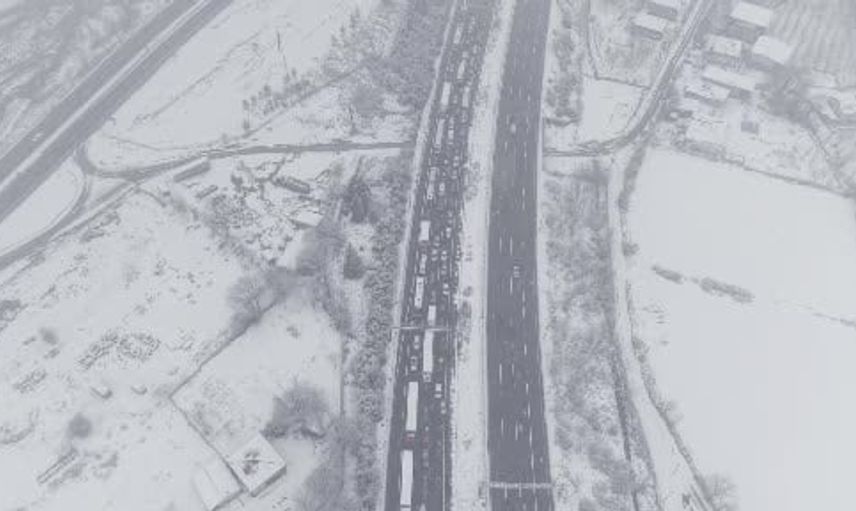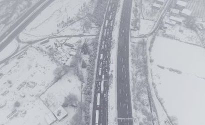 Düzce’de etkili olan kar yağışı nedeniyle Anadolu Otoyolu Bolu Dağı geçişinde aralıklarla trafik kısmen kapatılmaktadır. Zorlu hava koşulları altında yaşanan ulaşım aksamaları, havadan drone ile kaydedilmektedir.
