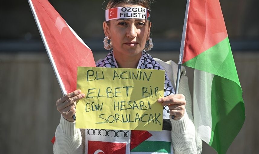 Akgül, tüm kadınları bir araya getirerek, "Barışın kadınla mümkün olduğu mesajını veriyoruz. Bugün burada tek bir kimlik olarak, insanlık meselesi için toplandık. Sessizliğimiz Gazze'nin en gür çığlığı olacaktır," şeklinde bir konuşma yaptı.
