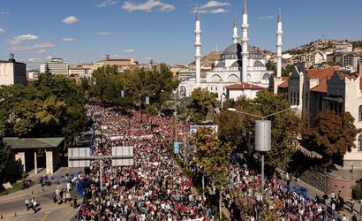 Ankara Filistin Dayanışma Platformuna (ANFİDAP) mensup sivil toplum kuruluşları, Filistin'de yaşanan insanlık dramına dikkati çekmek ve Gazzelilere destek olmak amacıyla Melike Hatun Camisi'nde toplanarak "Gazze Kararlılık Yürüyüşü" düzenledi. Atatürk Bulvarı'ndan, 15 Temmuz Kızılay Milli İrade Meydanı'na hareket eden grup havadan görüntülendi.