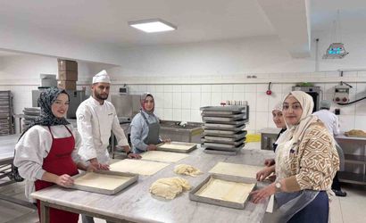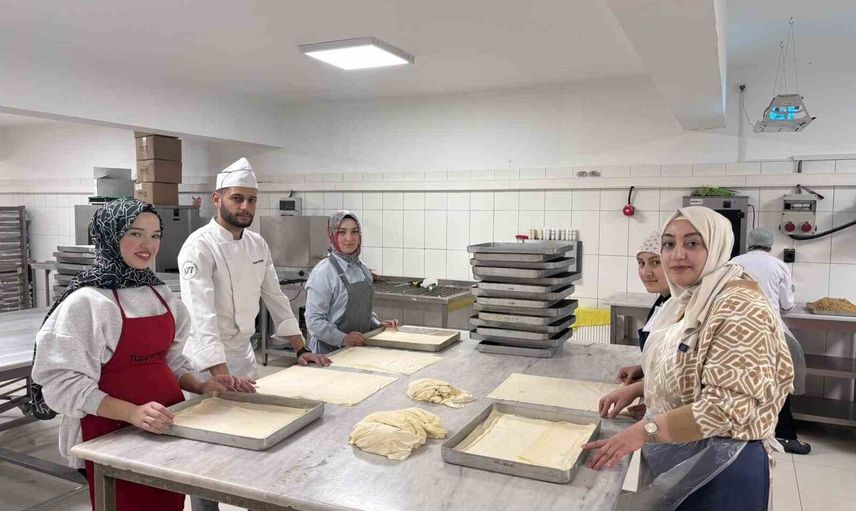 Ankara'nın Pursaklar ilçesinde bulunan Hüma Sultan Hanım Evi, eğitim alan Pastacılık Sınıfı kursiyerlerine eşsiz bir deneyim sunuyor. Bu kursiyerler, bu imalathane ortamında baklava ve börek yapımını adım adım öğreniyor.