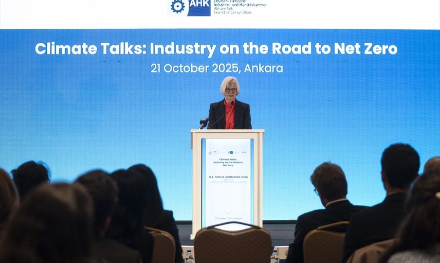 Almanya'nın Ankara Büyükelçiliği, Ankara'da bir otelde Alman-Türk Ticaret ve Sanayi Odası (AHK) ile Uluslararası İklim Girişimi (IKI) Politika Arayüzü ortaklığında "İklim Konuşmaları: Net Sıfır Hedefine Giden Yolda Endüstri" başlıklı konferans düzenledi. Almanya'nın Ankara Büyükelçisi Sibylle Katharina Sorg, konferansa katılarak konuşma yaptı.