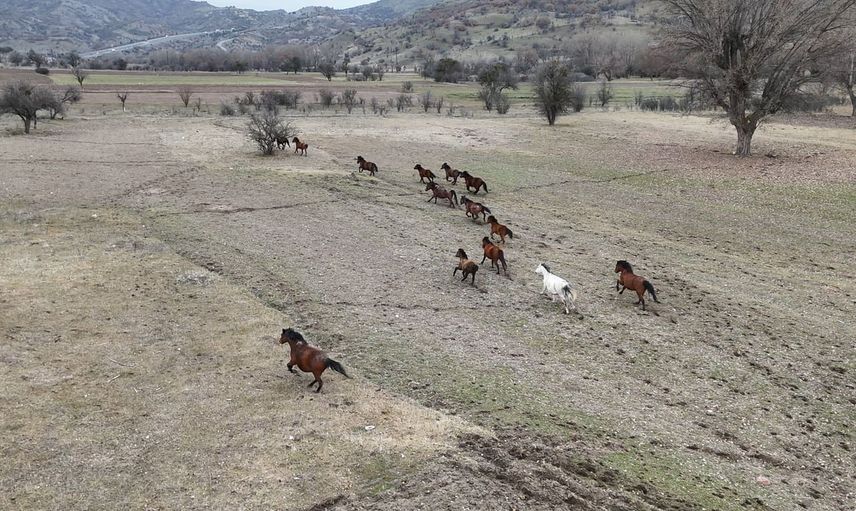 Ankara’da Yılkı Atları Gökyüzünden Görüntülendi