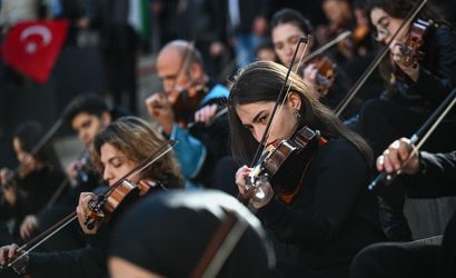 Ankara Müzik ve Güzel Sanatlar Üniversitesi'nde 2025-2026 akademik yılı, "İlk Ders Gazze" temasıyla başladı. Program kapsamında üniversitenin tüm birimlerinden oluşan yaklaşık 500 kişilik orkestra ve koro, Yunus Emre Sevgi Meydanı'nda "Can Filistin" adlı eseri canlı seslendirdi.