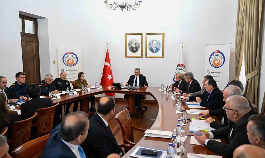 Antalya Valisi Hulusi Şahin başkanlığında yapılan toplantıda, sel, su baskını ve olası müdahale çalışmaları gibi konular ele alındı. Ayrıca, 26-27 Ocak tarihlerinde beklenen kuvvetli yağış ve fırtınaya karşı alınan tedbirler değerlendirildi.