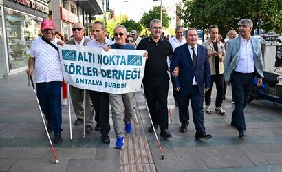 Altı Nokta Körler Derneği Antalya Şubesi tarafından organize edilen yürüyüş, Aydın Kanza Parkı'ndan başlayarak Cumhuriyet Meydanı'nda sona erdi.