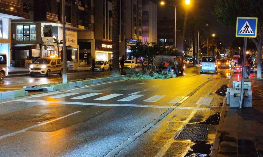 Palmiye ağacının devrilmesi sonrasında yolda güvenlik önlemleri alındı ve trafik tek şeritten kontrollü olarak sağlandı. Park ve Bahçeler Müdürlüğü ekipleri, yola savrulan palmiyeyi keserek kaldırdıktan sonra trafik akışı normale döndü.