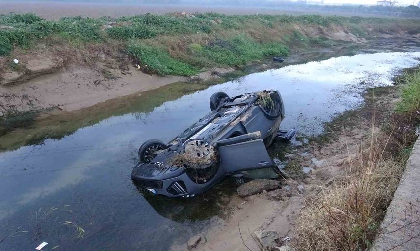 Antalya'nın Kepez ilçesinde, Göksu Mahallesi'nde meydana gelen kazada, yağmur nedeniyle kayganlaşan yolda direksiyon hakimiyetini kaybeden bir otomobil kanala düştü.