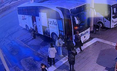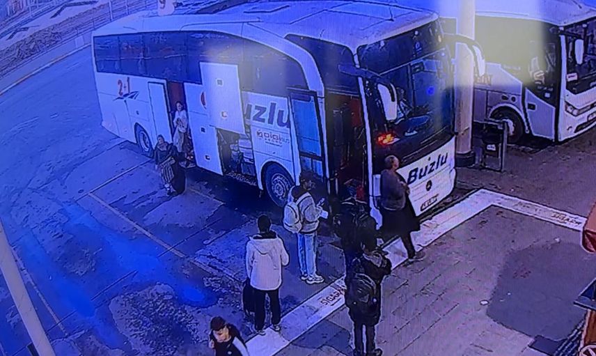 OTOBÜSÜN OTOGARDAKİ GİRİŞ VE ÇIKIŞ ANLARI GÜVENLİK KAMERASI GÖRÜNTÜLERİNE YANSIDI.
