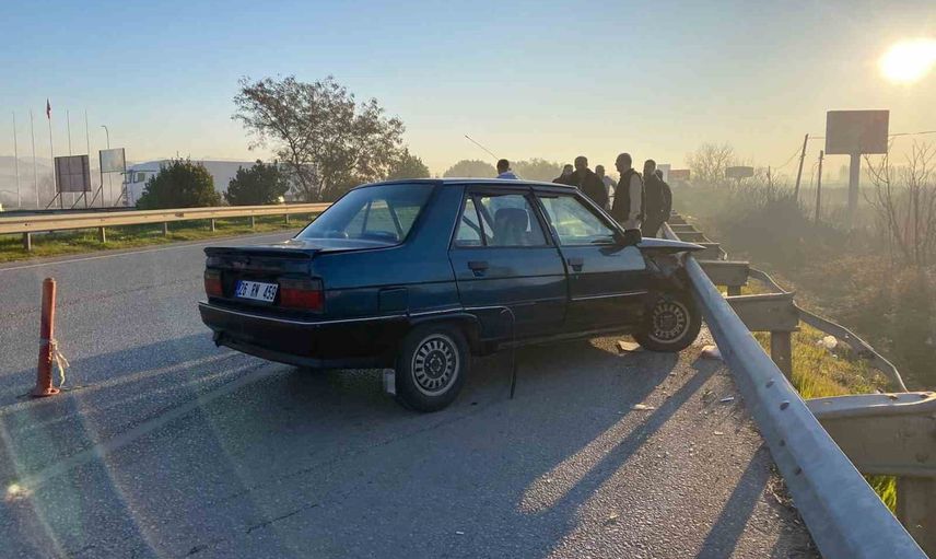 Antalya'nın Serik ilçesinde bir kaza meydana geldi. İki otomobilin çarpışması sonucu, bir araç demir bariyerin üzerinde asılı kaldı. Şans eseri, kazada herhangi bir yaralanma yaşanmadı.