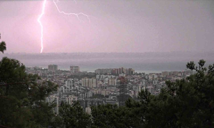 Meteoroloji Bölge Müdürlüğü’nün sarı kod uyarısı yaptığı Antalya’da, öğle saatlerinden itibaren şiddetli yağış ve rüzgar etkisini göstermeye başladı. Yağışlar sonucunda falezlerin şehrin silüetiyle olan bütünlüğü kayboldu ve atmosferde çakan şimşekler izleyenler için görsel bir şölen oluşturdu.
