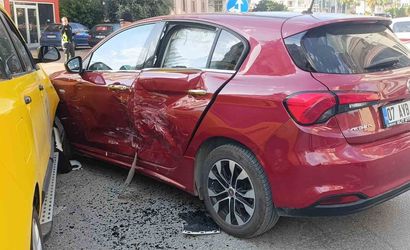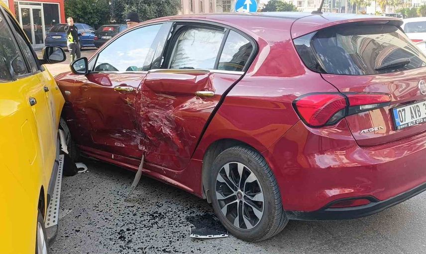Antalya'nın Manavgat ilçesinde, sinyal vererek sağa dönmek isteyen bir otomobil, yollarını kaydırdı ve aynı yönde ilerleyen bir ticari taksi ile çarpıştı.