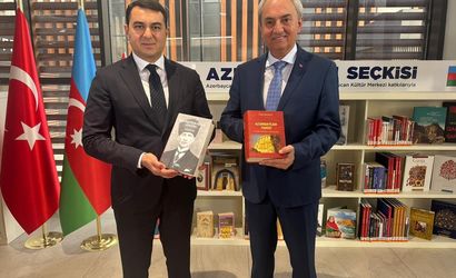 Antalya Kütüphanesi'nde Azerbaycan ile kültürel işbirliğini güçlendirmek, okuyuculara edebiyatını, tarihini, kültürünü tanıtmak amacıyla Azerbaycan Seçkisi oluşturuldu. Seçkinin açılışını Azerbaycan Kültür Bakanı Adil Kerimli (solda) ve Kepez Belediye Başkanı Mesut Kocagöz (sağda) yaptı.