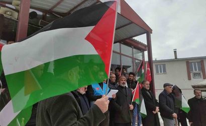 Ardahan'da çeşitli sivil toplum kuruluşlarının katılımıyla bir grup, Cuma namazının ardından İsrail'e karşı protesto düzenleyerek Filistin'e destek sunma amacıyla toplandı.