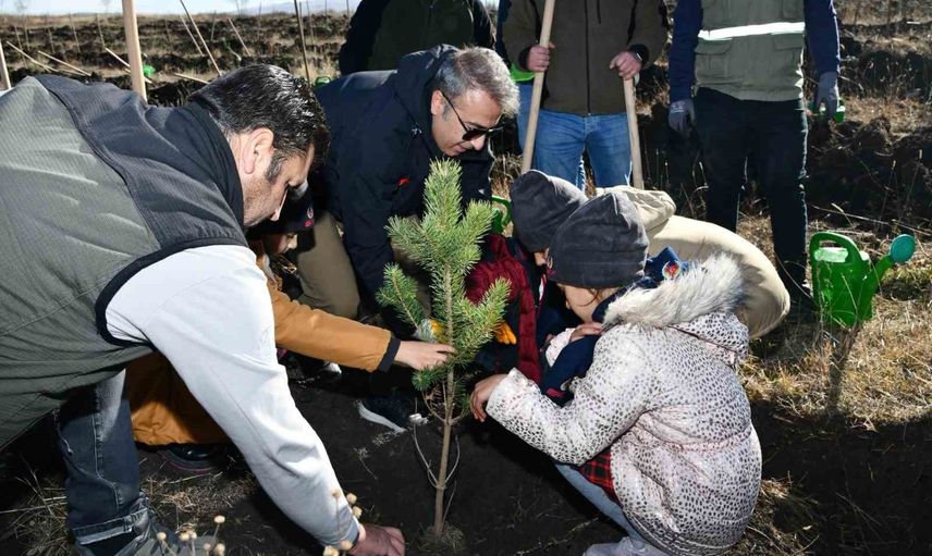 Ardahan’da, "Yeşil Vatan Benim Okulum Geleceğe Çare" projesi kapsamında öğrenciler fidan dikti.