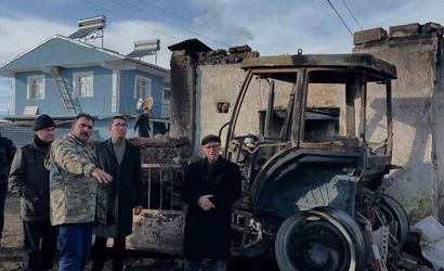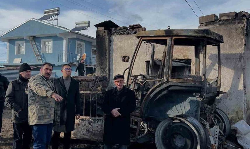 Yangında, ambarın yanı sıra bir traktör, 2 bin adet ot balyası ile 10 ton tahıl tamamen yanarak kül oldu.