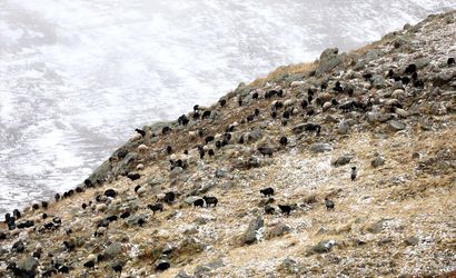 Ardahan'da meralarda otlamaya bırakılan küçükbaş hayvan sürüleri, eylülde yağan kar ile zor anlar yaşadı.