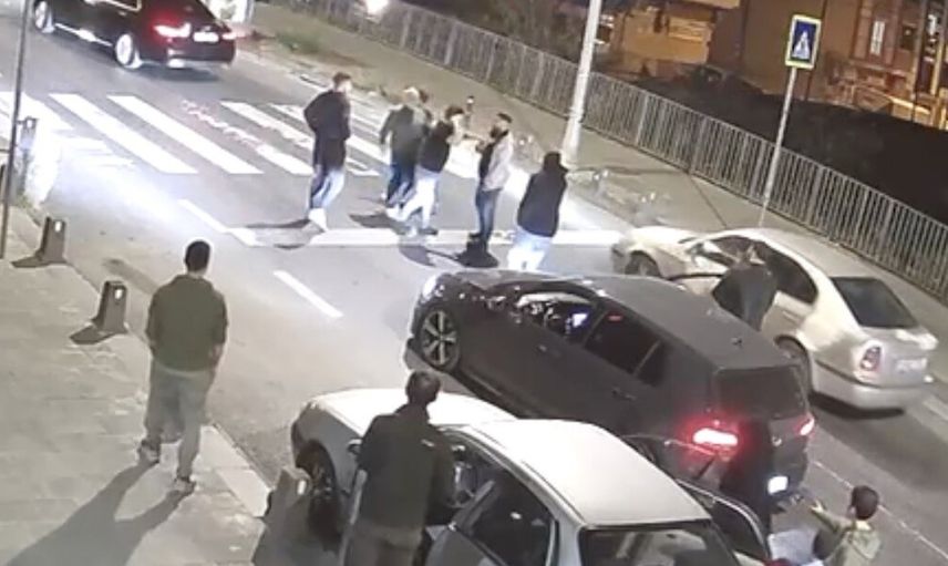 Olay anı, çevredeki bir iş yerinin güvenlik kamerasına yansıdı. Görüntülerde, tarafların tartışması, kalabalığın büyümesi ve polis ekiplerinin müdahale ettiği anlar net bir şekilde görülmektedir.