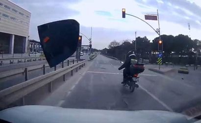 Motosikletli, durmakta olan aracın yan aynasına sert bir darbe uygulayarak aynayı kırdı. Bu esnada, kırmızı ışık ihlali yaparak hemen olay yerinden uzaklaştı.