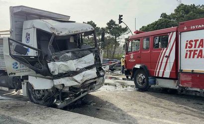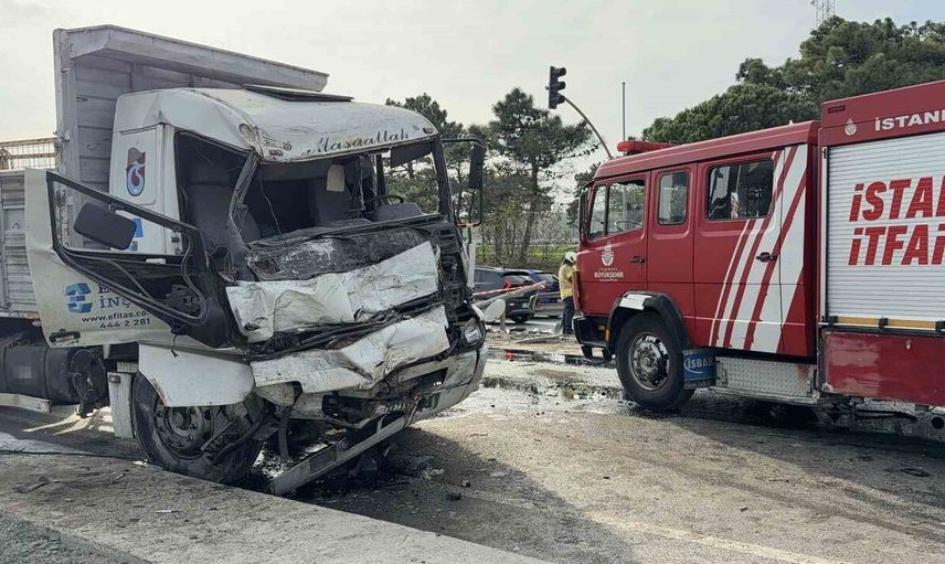 ARNAVUTKÖY’DE İKİ KAMYON ÇARPIŞTI: SÜRÜCÜ ARAÇ İÇİNDE SIKIŞTI