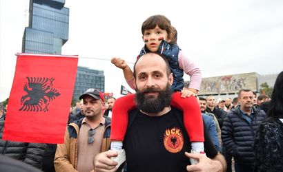 Protestoya katılmak amacıyla Kosova'nın başkenti Priştine'den yürüyerek gelen UÇK gazisi Agim Pllashniku, AA muhabirine verdiği demeçte, "İki gün önce yola çıktım. Bu büyük protestoya katılmak için 2 gün 2 gece yolculuk yaptım. Her adımımda Arnavut halkı beni destekledi," şeklinde ifade etti.