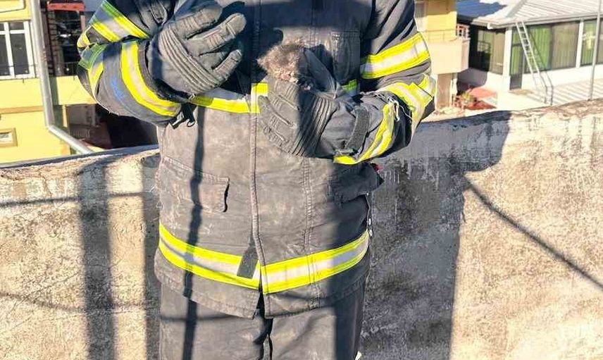 Hatay’ın Arsuz ilçesinde bir binanın havalandırma boşluğunda sıkışan yavru kedi, itfaiye ekiplerinin özverili çalışmasıyla kurtarıldı.