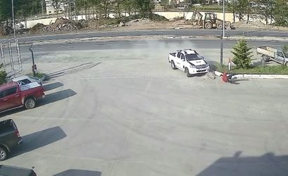 Artvin'in Hopa ilçesinde, bir akaryakıt istasyonu çalışanı Yüksel Gaz, istasyonun girişinde beklediği sırada aniden yola çıkan bir kamyonetin çarpması sonucu yaralandı.