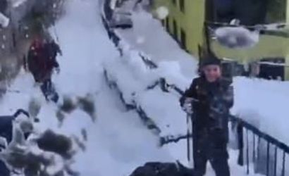 Artvin'de, kar temizliği yapan belediye ekipleri, kaydıkları alanda oyun oynamakta olan çocuklarla karşılaştı. O anlar, tatil sevinci içindeki çocukların kar topu ile gösterdiği "direniş" ile renklendi.
