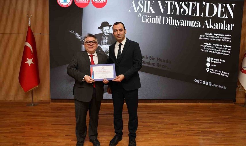 Konuşmaların ardından, Prof. Dr. Seyfullah Kara, Âşık Veysel’in iki türküsünü saz eşliğinde icra ederek dinleyicilere duygusal anlar yaşattı. Program sonunda Rektör Özölçer, sunum yapan akademisyenlere teşekkür belgelerini takdim ederek etkinliği sonlandırdı. Etkinlik, toplu hatıra fotoğrafıyla sona erdi.