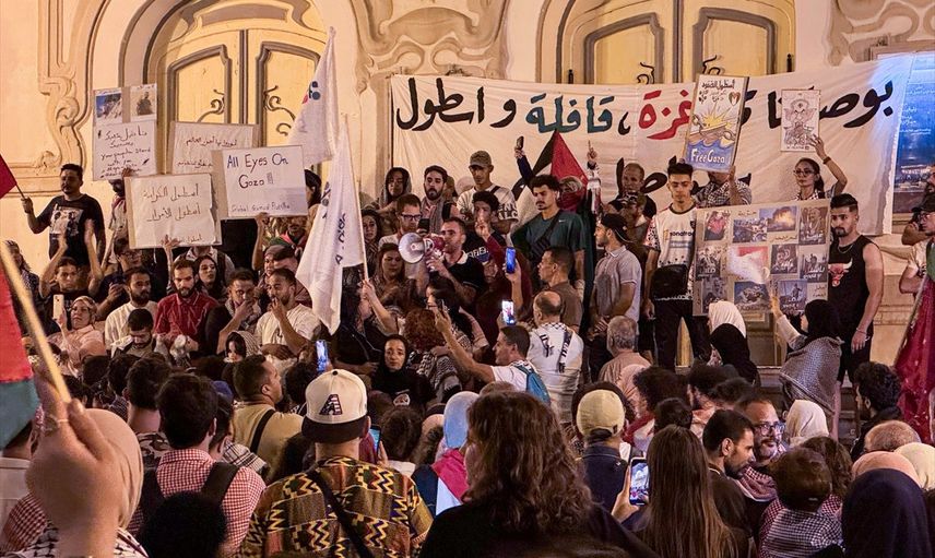 Tunus'ta, İsrail'in Gazze ablukasını kırmak için yola çıkan Küresel Sumud Filosu'na yönelik insansız hava aracı (İHA) saldırıları protesto edildi.