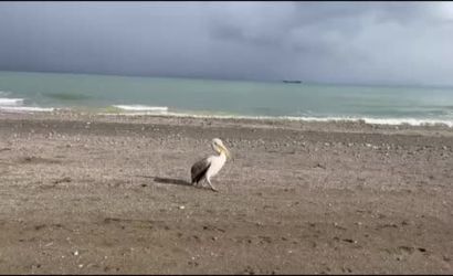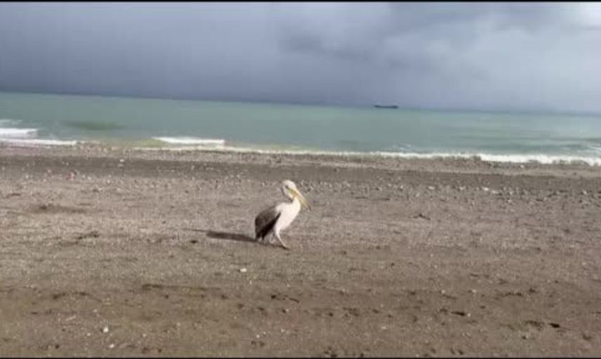 Sabah saatlerinde sahile çıkan pelikan, orada bulunan vatandaşlar tarafından cep telefonlarıyla kaydedildi. Pelikan, denizle arasında gidip gelerek martılarla birlikte sahilde bir süre vakit geçirdi.