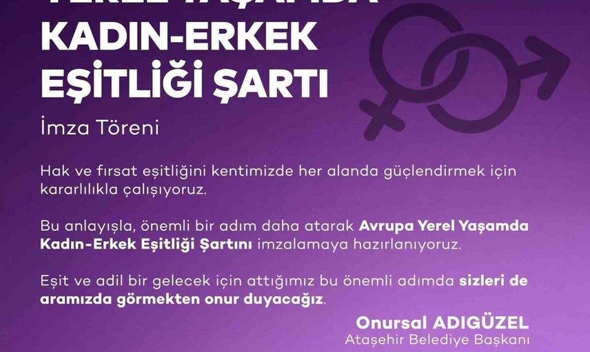 Ataşehir, 414 bin 966 kayıtlı nüfusunun 212 bin 327’sini kadınların oluşturduğu bir ilçe. İmza törenine çeşitli kadın temsilcileri, kadın muhtarlar, kadın belediye başkanları ve sivil toplum temsilcileri katılacak. Bu geniş katılım, kadın-erkek eşitliğinin toplumsal bir dayanışma ve ortak irade olduğunu gösteriyor.