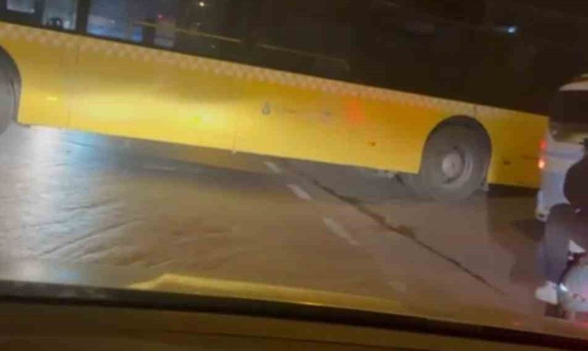 ATAŞEHİR'DE YOLA SIĞMAYAN OTOBÜS YOLA SIKIŞTI