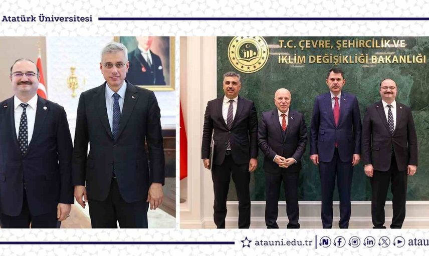 Atatürk Üniversitesi Rektörü Prof. Dr. Ahmet Hacımüftüoğlu, Ankara’da gerçekleştirdiği ziyarette Sağlık Bakanı Kemal Memişoğlu ve Çevre, Şehircilik ve İklim Değişikliği Bakanı Murat Kurum ile bir araya geldi.
