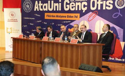 GENÇLİK VE SPOR BAKANLIĞININ ÜNİVERSİTE YAPILANMASI OLARAK HAYATA GEÇİRİLEN GENÇ OFİS UYGULAMASI KAPSAMINDA, ATATÜRK ÜNİVERSİTESİ EV SAHİPLİĞİNDE “FİKİRDEN AKSİYONA GİDEN YOL” PANELİ DÜZENLENDİ.