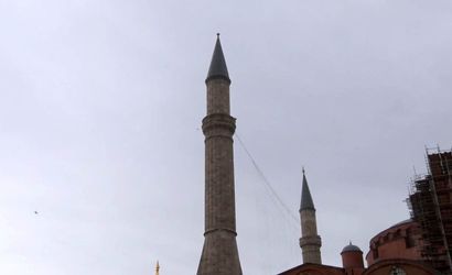 İstanbul'un tarihi eserlerinden biri olan Ayasofya-i Kebir Cami-i Şerifi'nde, Mimar Sinan dönemine ait minareye ait alem, şiddetli rüzgar nedeniyle yerinden koparak cami bahçesine düştü.