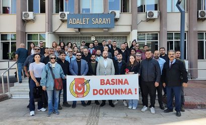 Aydın'da, trafik kazasını haberleştirmeye çalışan meslektaşlarının darbedilmesi üzerine gazeteciler bir araya geldi. Aydın Gazeteciler Cemiyeti (AGC) üyeleri, bu durumu kınamak amacıyla "Basına dokunma" yazılı pankartla Aydın Adliyesi önünde toplandı.