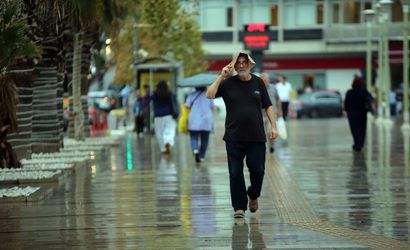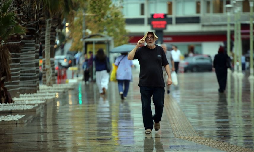 Aydın'da kurak geçen yaz mevsiminin ardından ilk yağmur damlaları toprakla buluştu. Sağanağa hazırlıklı olanlar şemsiyelerini açarken, hazırlıksız yakalananlar ise poşet ya da kartonla yağmurdan korundu.