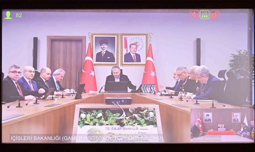 Bakan Yerlikaya'nın başkanlığında düzenlenen toplantıya ülke genelindeki valilerin katılımı sağlandı. Video konferans yoluyla yapılan bu önemli görüşmeye Vali Canbolat da iştirak etti.