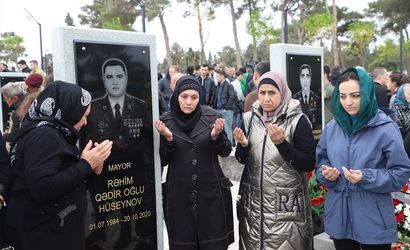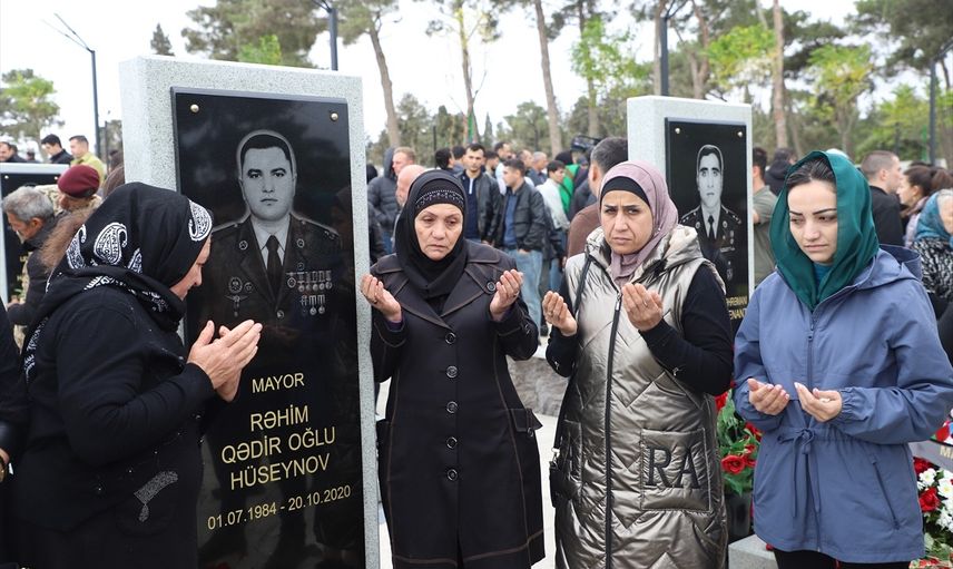 Bakü'deki Askeri Şehitlikte gerçekleşen anma törenine Eylül ayında katılan şehit yakınları, mezarlara çiçek bıraktı ve dualar etti. Ziyaretçiler, gözyaşlarını tutmakta zorluk çekti.