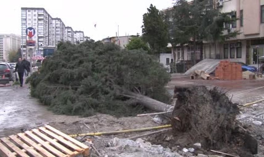 Bahçelievler'de şiddetli rüzgar nedeniyle ağaç devrildi, bir kişi altında kaldı