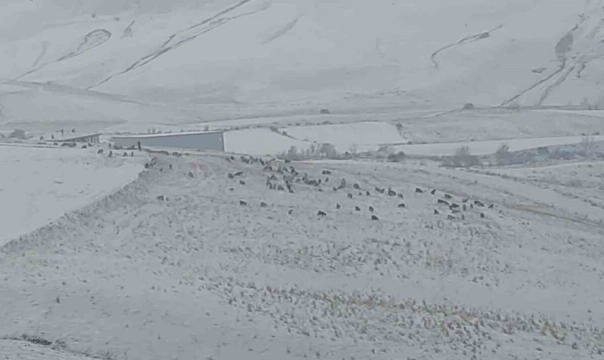 VAN'IN BAHÇESARAY İLÇESİNDE ETKİLİ OLAN KAR YAĞIŞI HAYATI OLUMSUZ YÖNDE ETKİLERKEN, MAHALLE SAKİNLERİ HAYVANLARINI KAR ÜZERİNDE BESLİYOR