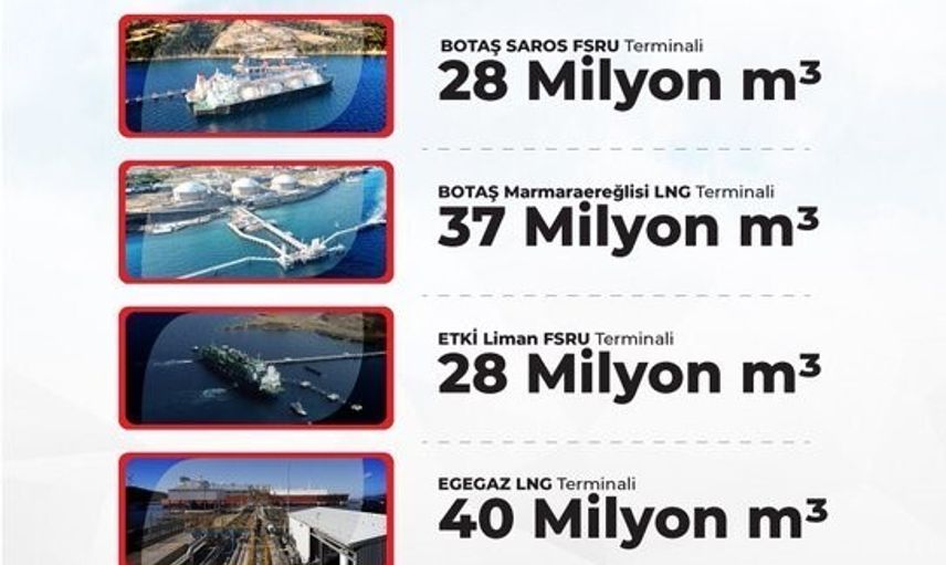 Tüketimin zirve yaptığı en soğuk kış günlerinde Türkiye’nin günlük doğal gaz ihtiyacının ortalama 330 milyon metreküp olduğunu kaydeden Bayraktar, "LNG kapasitemiz bu dönemde bile ihtiyaç duyulan gaz miktarını karşılayabilecek düzeydedir" şeklinde konuştu.