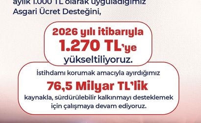 Bakan, ayrıca asgari ücret desteğinin 2026 yılı itibarıyla bin 270 liraya yükseleceğini hatırlatarak, bu adımların istihdamı destekleyecek politikalar doğrultusunda kararlılıkla sürdürüleceğinin de altını çizdi.