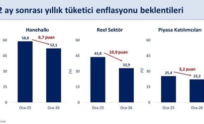 Bakan Şimşek, 12 ay sonrası enflasyon beklentilerinin geçen yılın aynı dönemine oranla hanehalkında 6,7 puan, reel sektörde 10,9 puan ve piyasa katılımcılarında 3,2 puan gerilediğini belirtti.