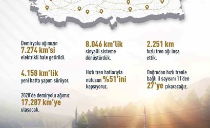Uraloğlu, demiryolu ağının 7 bin 274 kilometresinin elektrikli hale getirildiğini ve 8 bin 46 kilometresinin sinyalli sisteme dönüştürüldüğünü belirtti. Son olarak, 2028 yılına kadar hedeflerinin demiryolu ağını 17 bin 287 kilometreye ulaştırmak olduğunu vurguladı.