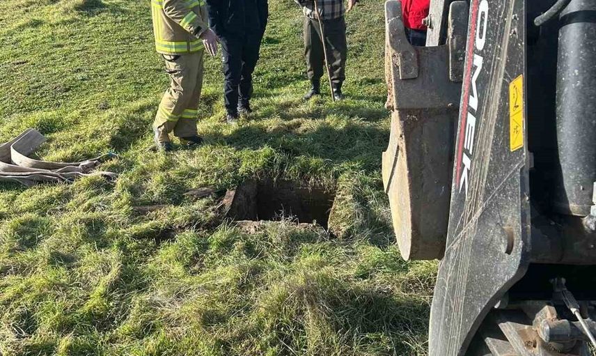 Kuyuda mahsur kalan inek için iş makinelerinin de destek verdiği titiz bir kurtarma çalışması başlatıldı. Dakikalar süren yoğun çabalar sonucunda, ineğin sahibi Adnan Yaşar İlhan’a ait olan hayvan, sağ salim kuyudan çıkarıldı.