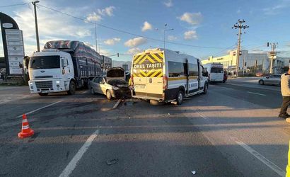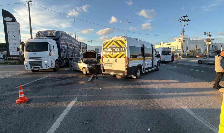 Edinilen bilgilere göre, R.E. yönetimindeki 10 S 15018 plakalı öğrenci servisi, Devlet Hastanesi ışıklı kavşağında ana yola çıkış yaparken Edremit istikametinden Balıkesir yönüne seyir halinde olan S.D. idaresindeki 10 ADA 97 plakalı otomobil ile çarpıştı.